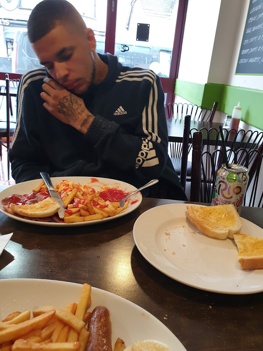 The menu at Woodside Cafe is a delightful showcase of homestyle cuisine, featuring an array of dishes that cater to every appetite. Starting with their comforting Jacket Potatoes, you can choose from various toppings like Cheese and Beans (£5.60) or the rich Bolognese (£6.20), all beautifully paired with a fresh salad. Breakfast lovers will be in heaven with options like the classic Egg, Bacon, and Sausage combo (£6.30), or the decadent 2 Egg, 2 Bacon, 2 Sausage, Mushrooms, Hash Brown & Beans (£8.60)—perfect for fueling your day.